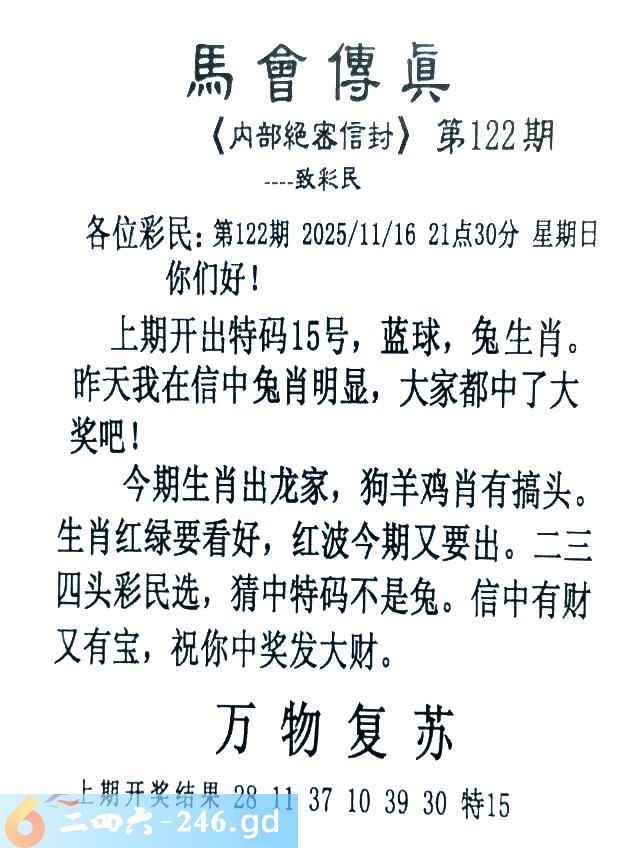 122期:首发推荐:≮馬會傳眞≯→(香港正版)