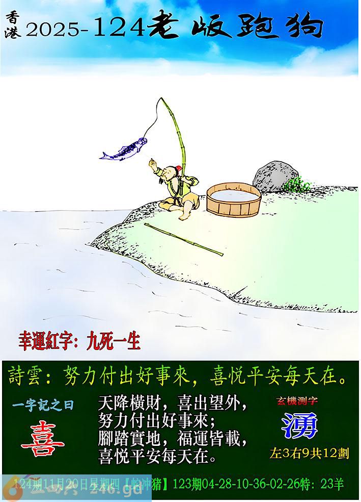 124期老版跑狗一字記之曰:【喜】 詩雲:努力付出好事來,喜悦平安每天在。