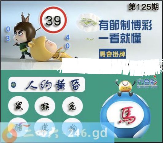 2025年125期正版彩图挂:39 爆:马 挂牌成语:人約黃昏 挂牌出肖:鼠猴兔猪虎狗