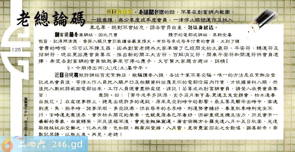 125期:六合皇金句/老总论码/萧公子/林大师/五行夺码/老总信箱截图