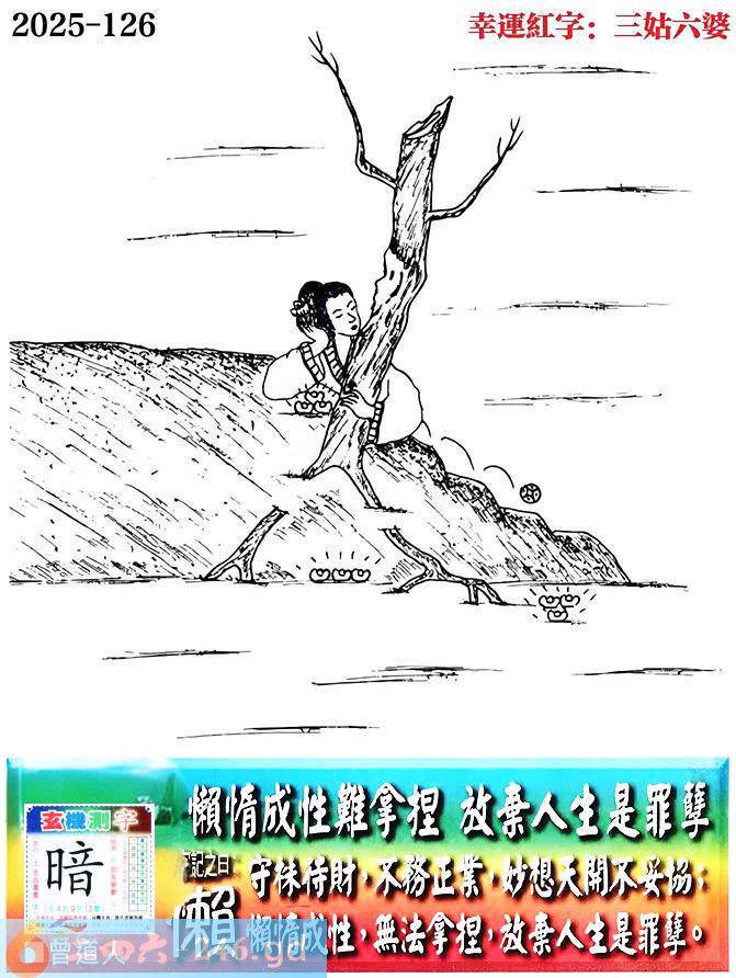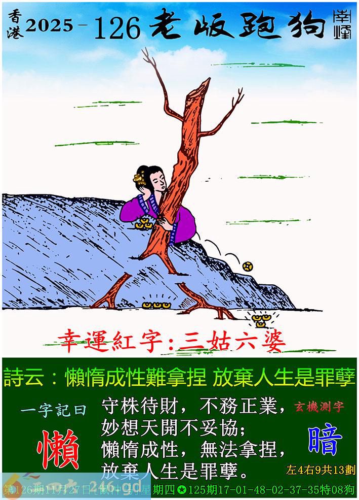 126期老版跑狗一字記之曰:【懶】 詩雲:懶惰成性難拿捏,放棄人生是罪孽。