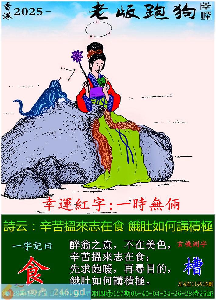 128期老版跑狗一字記之曰:【食】 詩雲:辛苦搵來志在食,餓肚如何講積極。