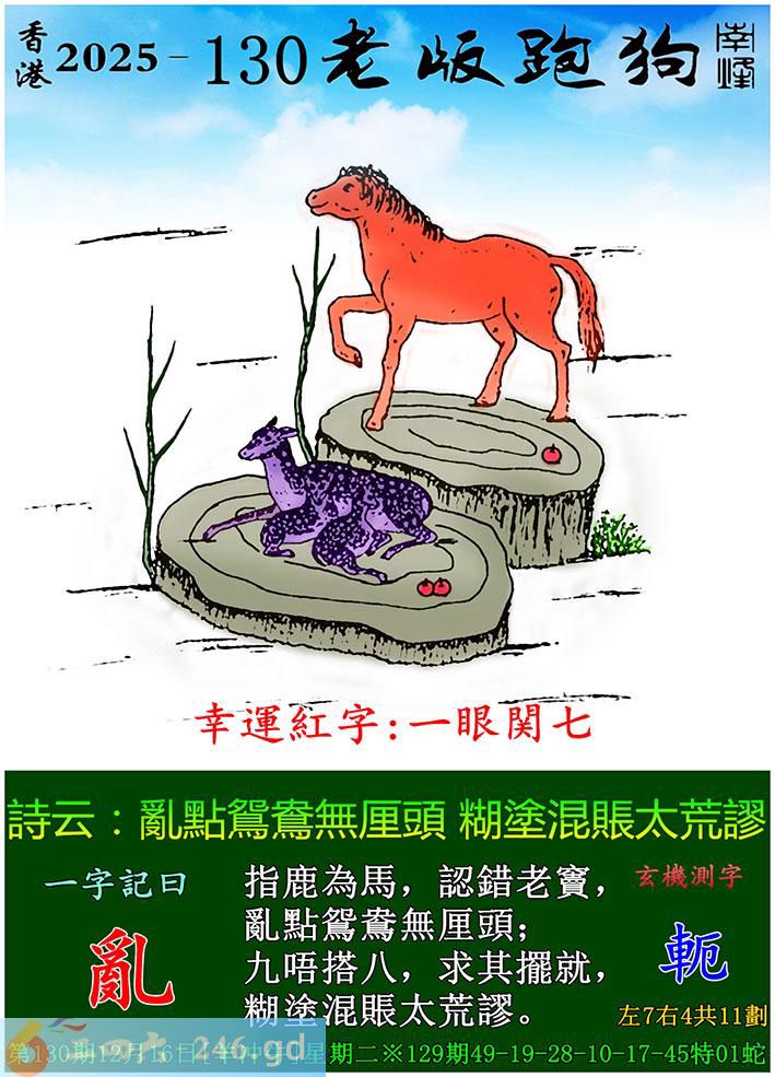 130期老版跑狗一字記之曰:【亂】 詩雲:亂點鴛鴦無厘頭,糊塗混賬太荒謬。