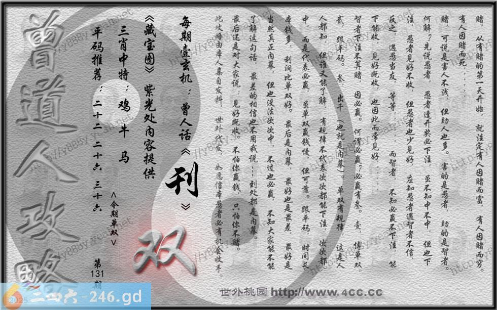 131期藏寶圖 新:追欢逐乐少闲时 老:谁种萧萧数百竿 禁:猪 禁:2尾 玄機字:《刊》