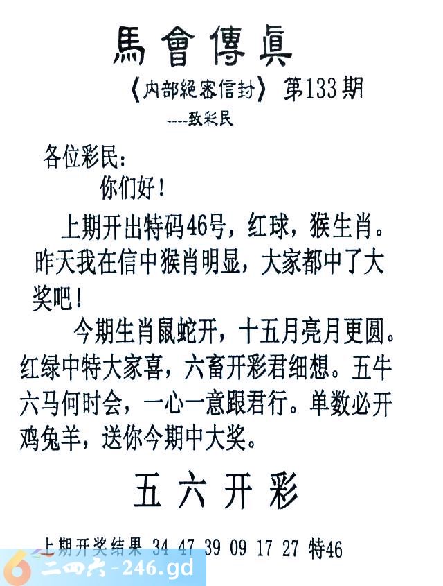 133期:首发推荐:≮馬會傳眞≯→(香港正版)