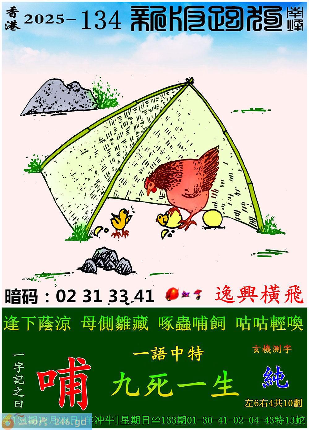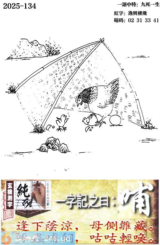134期跑狗一字記之曰:【哺】 逢下蔭涼,母側雛藏。 啄蟲哺飼,咕咕輕喚。