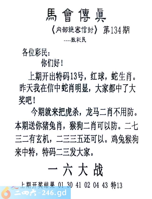 134期:首发推荐:≮馬會傳眞≯→(香港正版)