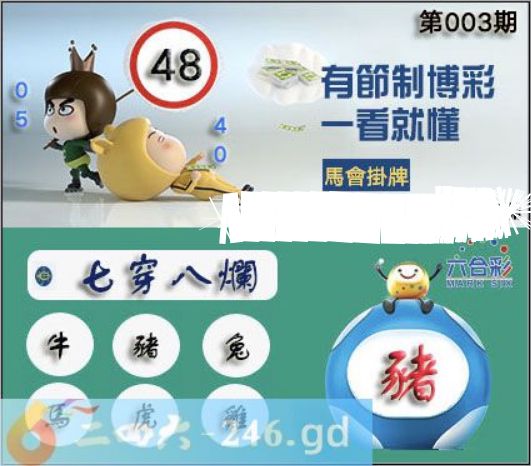 2026年003期正版彩图挂:48 爆:猪 挂牌成语:七穿八烂 挂牌出肖:牛猪兔马虎鸡