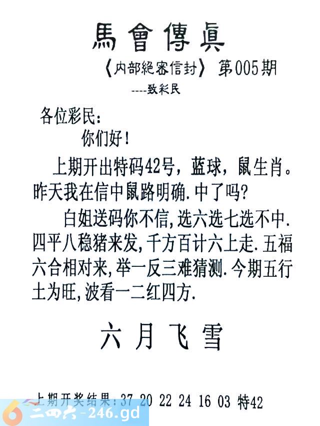 005期:首发推荐:≮馬會傳眞≯→(香港正版)
