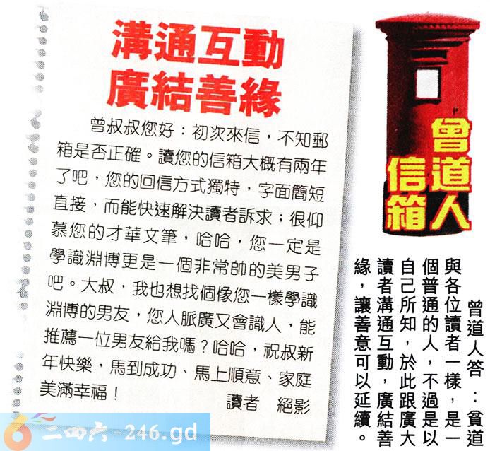 去信人套的是男肖,曾回复他也不过是一个平凡的人,尽其所能传授六合知识与广大读者结缘