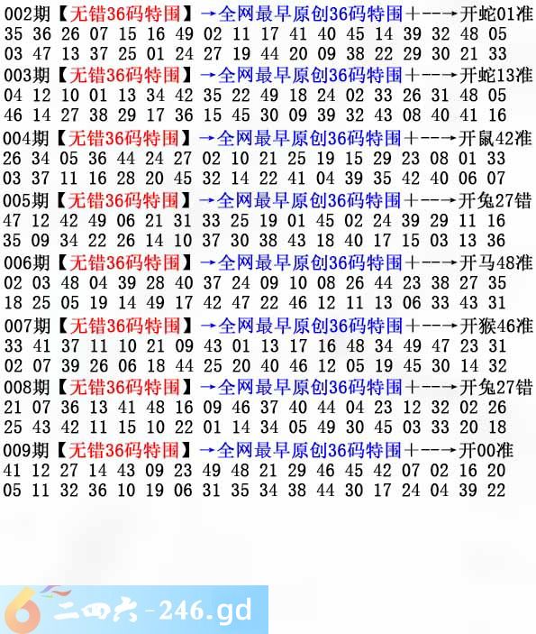 009期:无错36码
