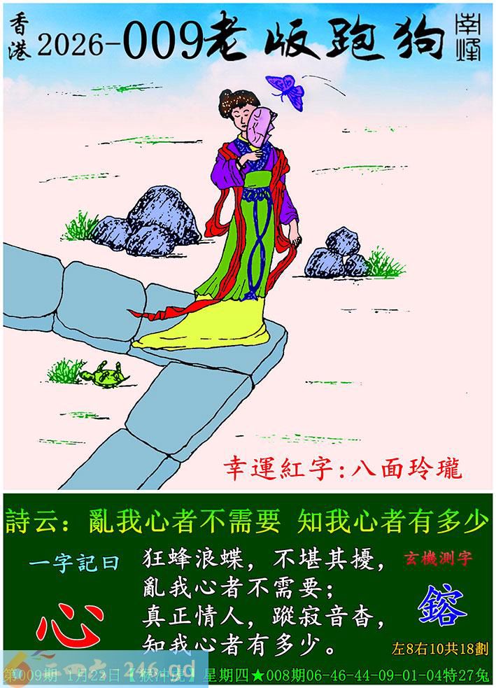 009期老版跑狗一字記之曰:【心】 詩雲:亂我心者不需要,知我心者有多少。