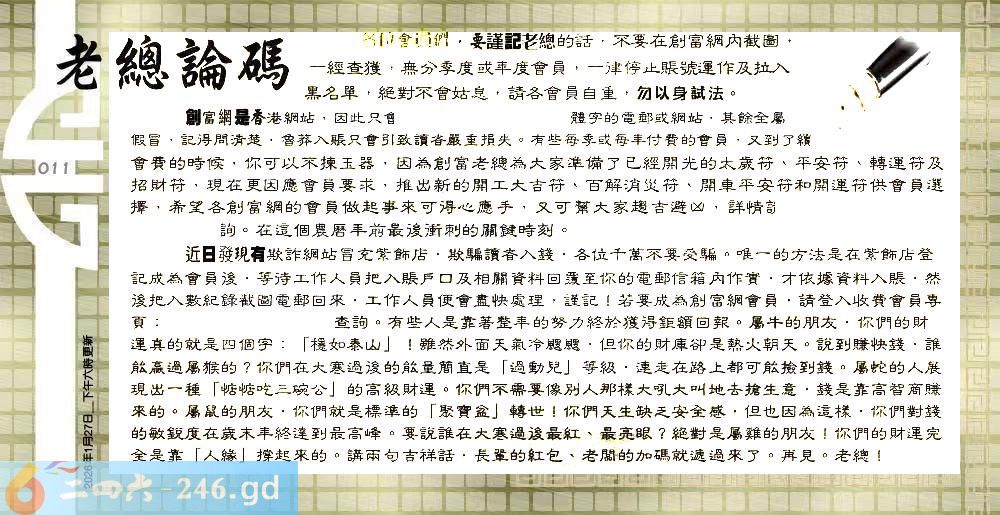 011期:六合皇金句/老总论码/萧公子/林大师/五行夺码/老总信箱截图