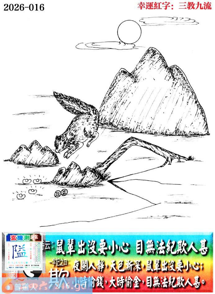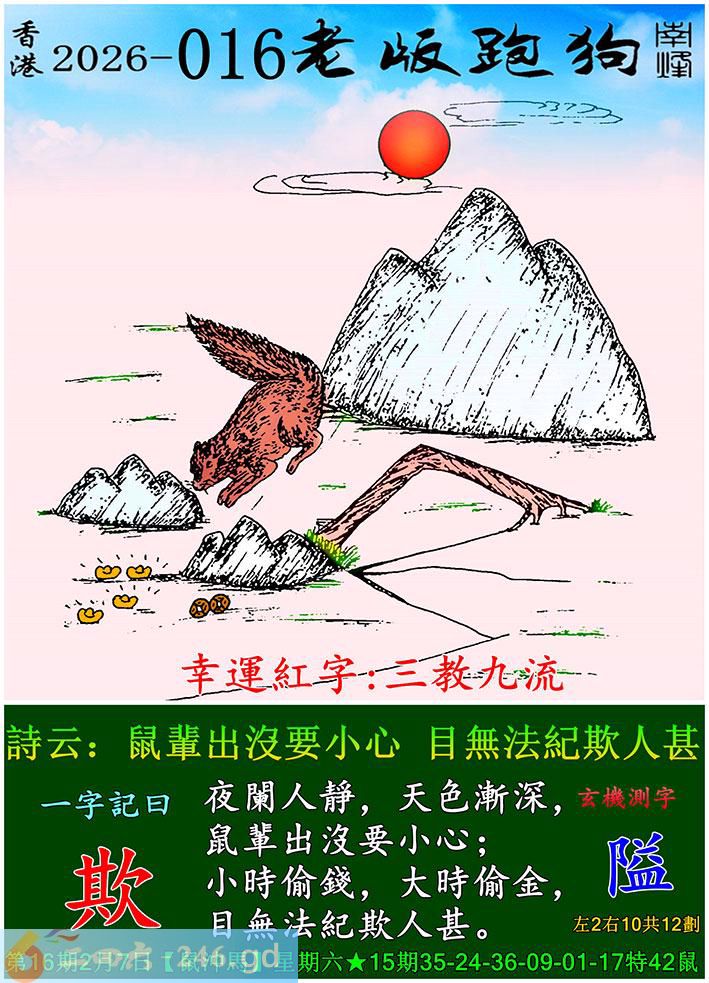 016期老版跑狗一字記之曰:【欺】 詩雲:鼠輩出沒要小心,目無法紀欺人甚。