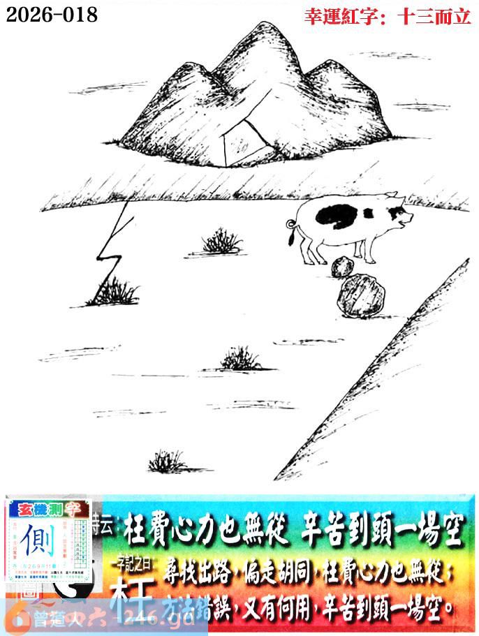 018期老版跑狗一字記之曰:【枉】 詩雲:枉費心力也無從,辛苦到頭一場空。